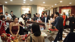 100名以上のお客様にお越しいただき、パーティーはおかげさまで大盛況となりました。「今年もたくさん名刺交換ができました」、「お酒もフィンガーフードもたくさん種類があって、豪華なクリスマスパーティーですね」など、たくさんのお褒めの言葉をいただきました。