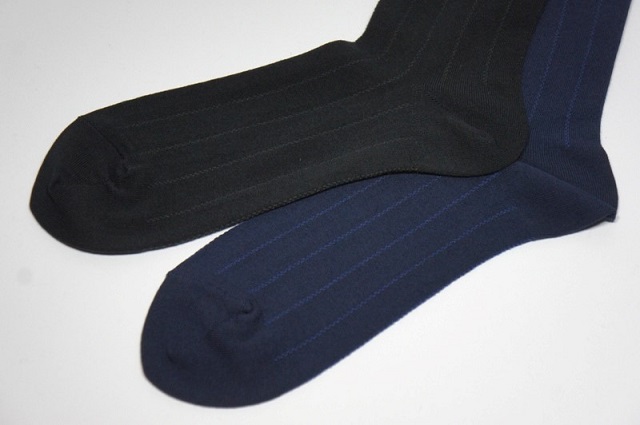 一日中ずっと履いて歩いた靴下は、蒸れや臭いが気になりますよね。「BYBB ビジネスソックス」は消臭加工が施されており、長時間の着用でも快適です。ネイビーとブラックの2色で、スタイリッシュなストライプ柄も特徴的。薄手ながら履き心地もしっかりとしており、多くのビジネスパーソンから人気のロングセラーソックスです。