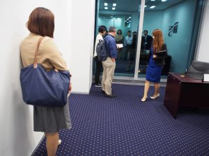 「これから起業しよう!」という皆さんにとって、レンタルオフィスやバーチャルオフィス、コワーキングスペースからのスタートは登記などを含めてさまざまなメリットのある選択肢。そこで、講演の後は、会場を提供させていただいた六本木トライセブン拠点を見学!実際のオフィススペースや設備などをご覧いただきました。