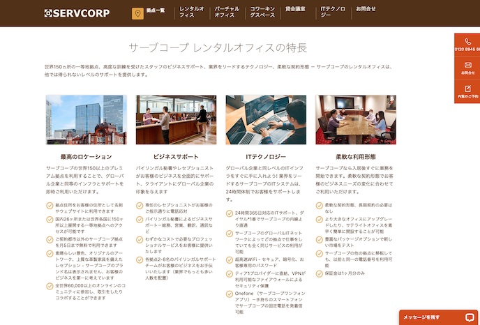 椅子や机、会議室、あるいはプリンターといったオフィス家具や機器が、あらかじめ備えられたオフィスです。個室はもちろん、フリーアドレス制で利用できるコワーキングオフィスといったシェアオフィスのサービスも。一般的な賃貸オフィスと比べて初期費用を大幅に抑えられるうえ、1カ月からの短期契約が可能なケースがほとんど。柔軟なオフィス利用ができて便利です。