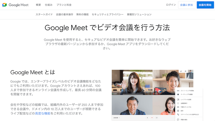 Googleアカウントがあれば誰でも利用可能(アカウント非保有の場合には要承認)。無料版は一度のログインで最長60分までが基本ですが、コロナ対策として時間無制限のサービスが提供されています。米Googleは2021年3月末までこのサービスを継続すると発表していますが、事前に確認を。また、背景設定や録画といった基本機能はZoomと大きく変わりませんが、Google Meetの場合、録画データの保存先はGoogleドライブ。セキュリティに定評があるため、機密性の高いやり取りに向いています。