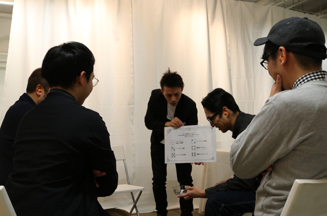 今回のゲームの内容は参加者全員が耳栓をつけ、音と言葉のない空間で意思疎通を図るというもの。カップルや夫婦で「10年後の理想の自分」や「自分のプロフィール」などの課題に取り組み、話さないクリスマスデートを楽しみました。同じ課題に取り組んでいても、ひとつの動作を丁寧に繰り返すことで伝えようとする人もいれば、連想ゲームのように色々な情報を表現することで共有しようとする人もいます。体験者たちは言葉がない「いつもと違う空間」でお互いの知らない一面を見つけることができます。