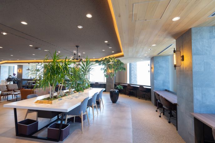 カフェにはないインフラが整っており、重厚感のある落ち着いた空間と高層階からの景色で仕事が捗ります。 24時間365日いつでも利用でき、快適な仕事環境を提供します。