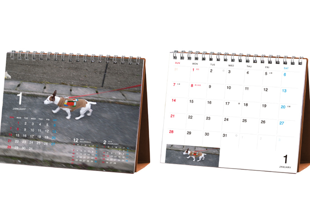 ありそうでなかったホワイトボードタイプの卓上カレンダー。細いペン先のホワイトボードマーカーがついていて、書いては消せる仕様です。糸井重里さんの愛犬・ブイヨンの写真も愛らしく、デスクの上の癒し的存在になりそうです。