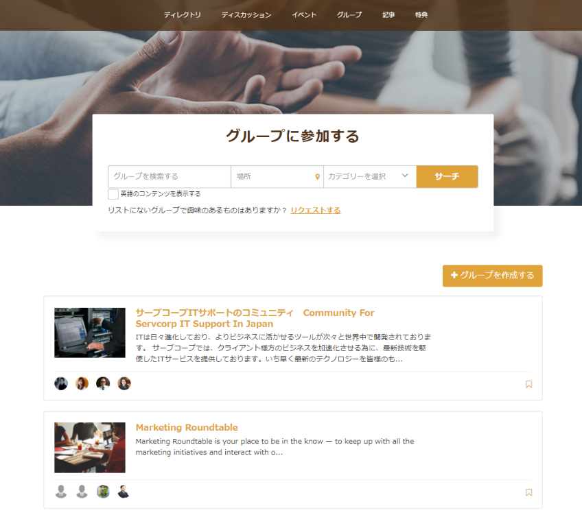 また、さまざまなジャンルのグループの中から自分の分野や興味のあるグループに参加することで、さらに必要な情報を逃さすキャッチできます。例えば、「サーブコープITサポートのコミュニティ Community For Servcorp IT Support In Japan」内では、日々進化し続けるIT業界の“今”をもらさずキャッチアップしていただくためにサーブコープITエキスパートが最新のIT事情から日々の業務に役立つIT知識を定期的に投稿しています。