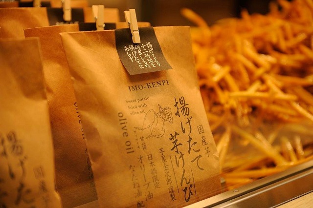 芋屋金次郎の芋けんぴは、芋作りからこだわった逸品。こだわりの芋と油と砂糖だけで作るので、添加物を使っていない昔ながらの味わいも手土産として好評をいただきます。日本橋店は揚げ工房を併設しているので、贅沢にオリーブ油を使った揚げたての芋けんぴを購入できます。シンプルなお菓子ではありますが、あっと驚いていただける手土産です。