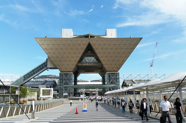 会場は、東京ビッグサイト。テレワーク支援・会議システム・オフィス移転など、働き方改革に役立つさまざまな企業が出展し、参加企業は過去最大の750社にも上りました。多くのビジネスパーソンが、暑い日差しを避けるように屋根のあるエントランスの下を通って、会場と最寄り駅を行き来していたのが印象的です。