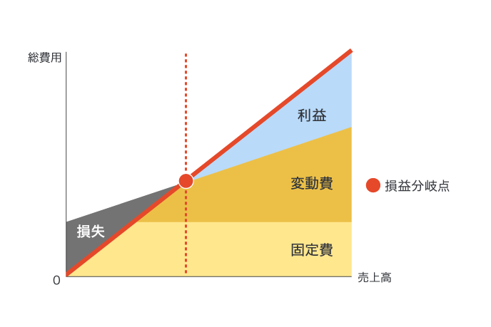 損益分岐点が高いほど黒字化は困難となるため、自社の経営体質を見直し、できる限り損益分岐点を引き下げることが重要です。