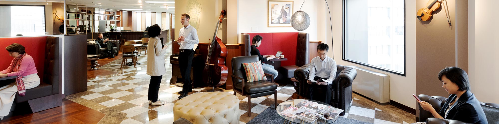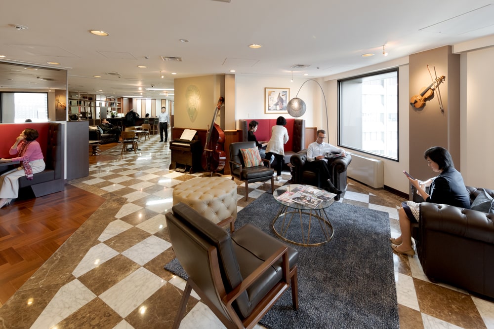 Servcorp is located on the fourteenth floor, providing an excellent environment with various sized serviced offices, a luxurious boardroom with granite table, meeting rooms, spacious reception area and a coworking space with beautiful views. Restaurants in the basement floor provide clients with a variety of dining choices. Hibiya Park, Tokyo's first western style park is just a 5 minute stroll from the building and a great option for a lunch-break walk or even a game of tennis.