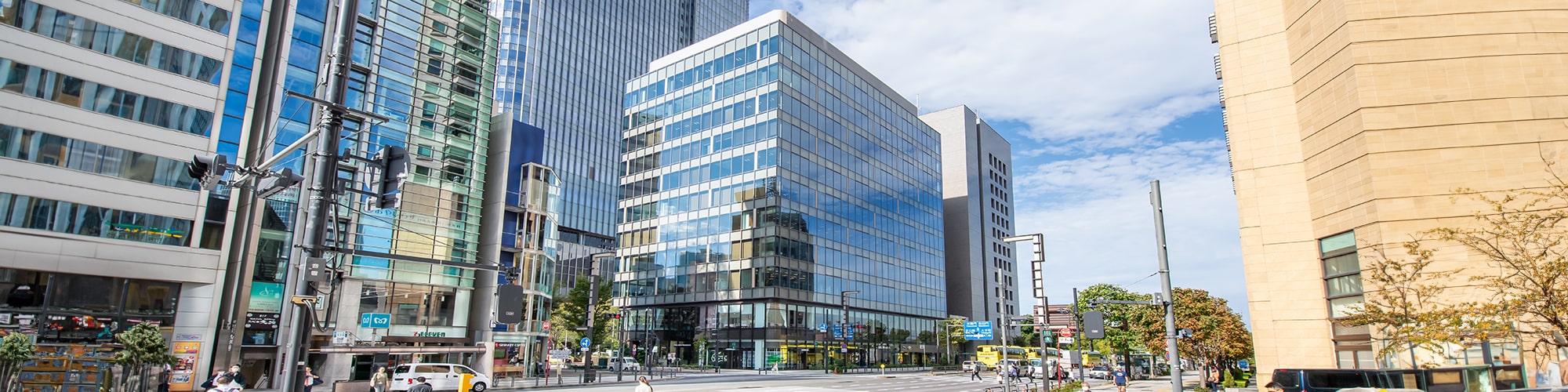 東宝日比谷プロムナードビルは、緑豊かな日比谷公園や皇居外苑を見下ろす、眺望抜群のビルです。日比谷、有楽町、丸の内、銀座の4つの街が交差する好立地。東京メトロ日比谷駅に直結し、JR有楽町駅からも徒歩3分、銀座へも徒歩圏内と、ビジネスにも大変便利な立地です。働くビジネスパーソンの健康・快適性の維持・向上をサポートするための設備を備えたビルで、環境評価システム「CASBEEスマートウェルネスオフィス評価認証」を取得しています。