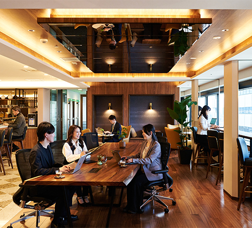 オフィス利用者も使えるラウンジエリア