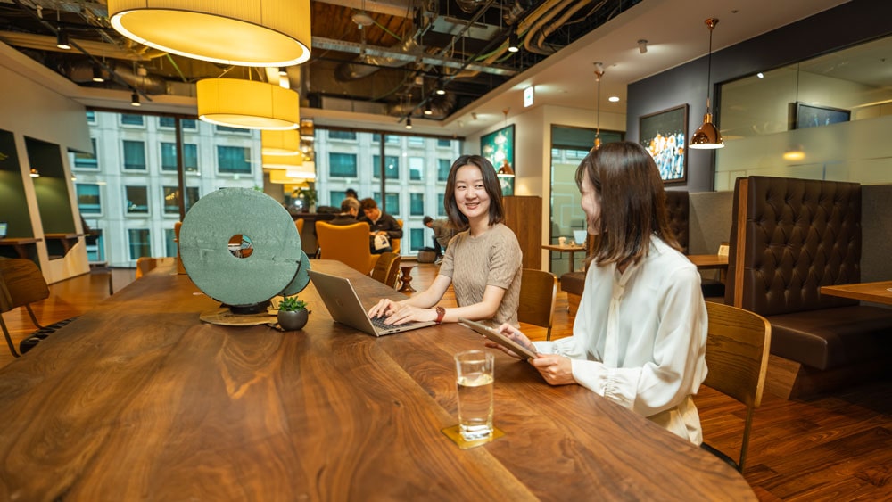 コワーキングラウンジを営業時間内、または24時間365日ご利用可能。ノートパソコンを持ち込んですぐに仕事を始められます。